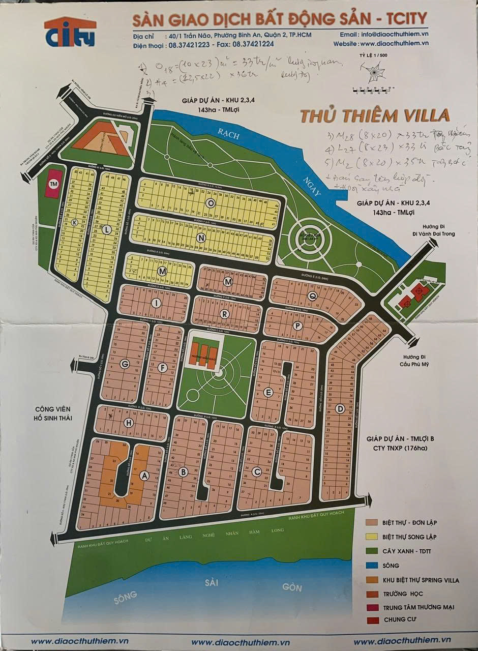 Bán đất ( 8mx23m, Lô L ) khu dân cư Thủ Thiêm Villa