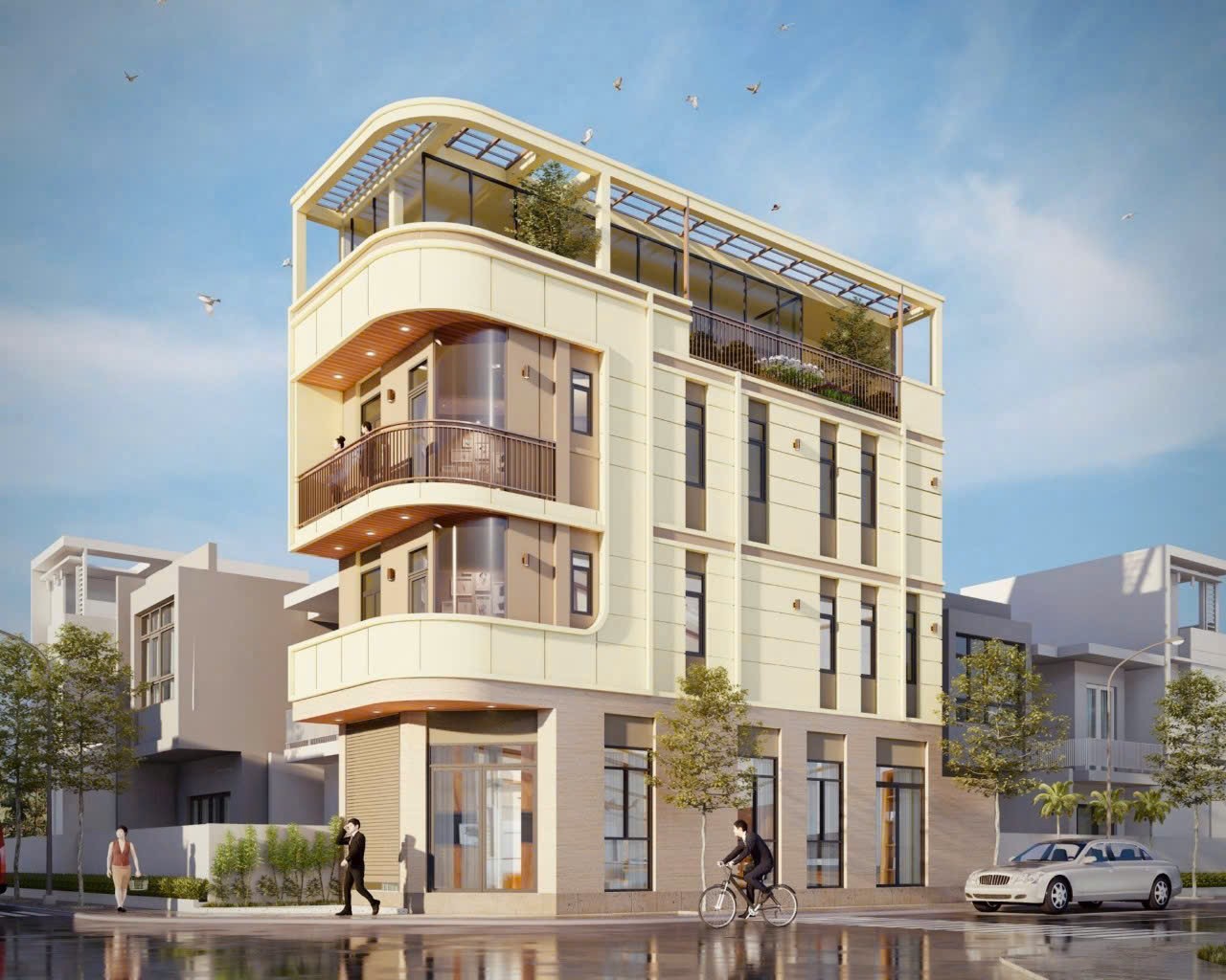 🏗️ Kết cấu: Trệt + 2 lầu + sân thượng Có thang máy Phòng khách rộng rãi 5 phòng ngủ thoáng mát Nhà mới xây, hoàn thiện cao cấp